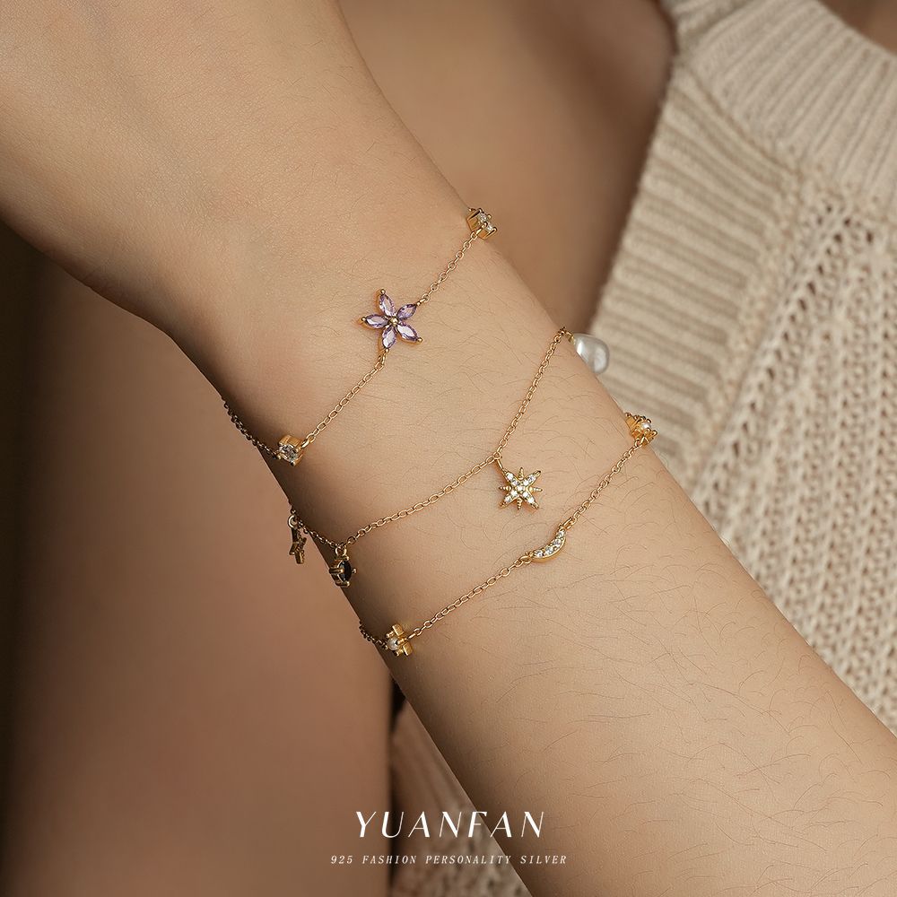 欧米のファッションs925純銀の花はダイヤモンドのブレスレットの女性を入れて軽くて豪華で簡単な潮流の五角星の精巧な手飾りの越境を飾ります。