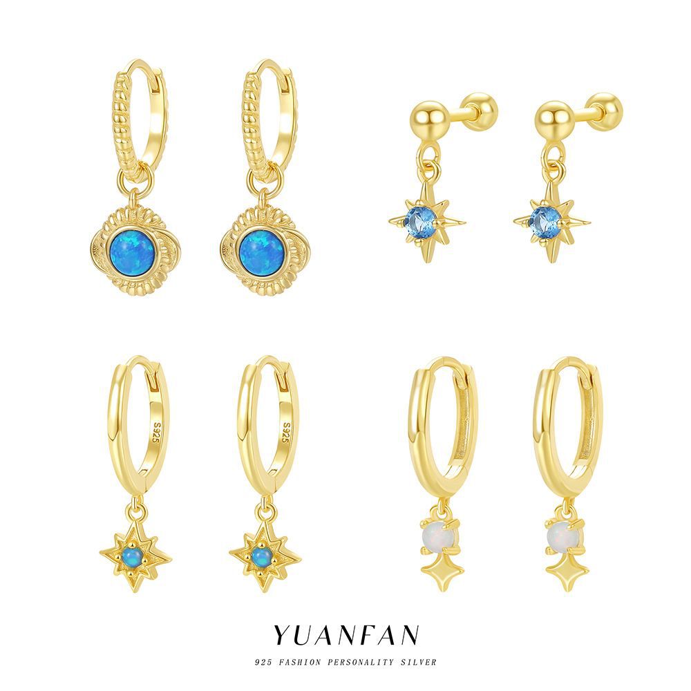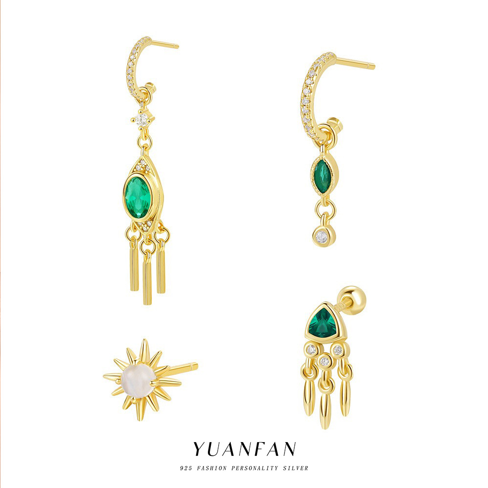 遠梵s925純銀クロスボーダー卸売りピアス女性星月微嵌め込み流蘇耳飾りファッション精緻デザイン感セット