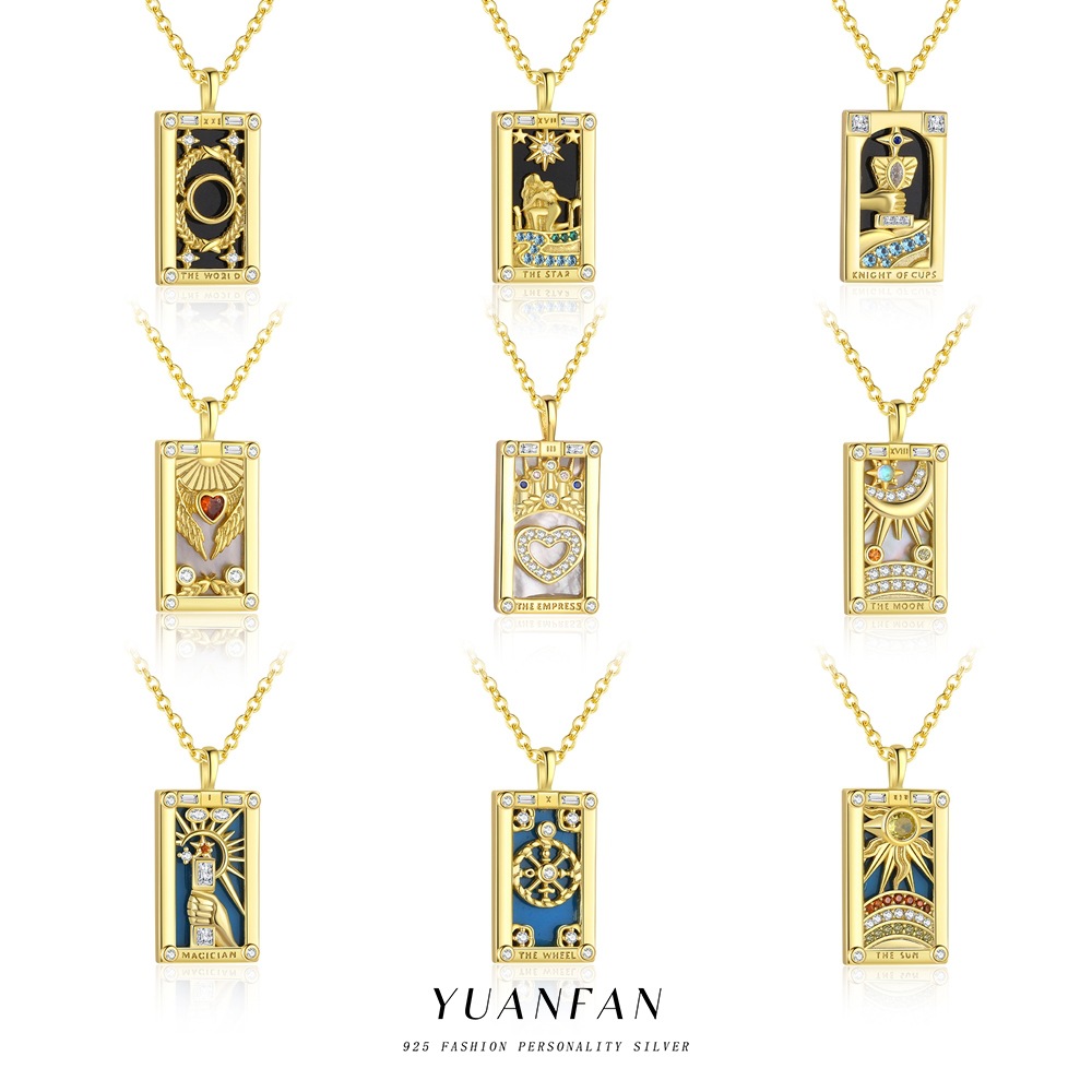 S925純銀欧米レトロブランドペンダント金メッキドリップジルコンネックレス小衆中古風クロスボーダージュエリー