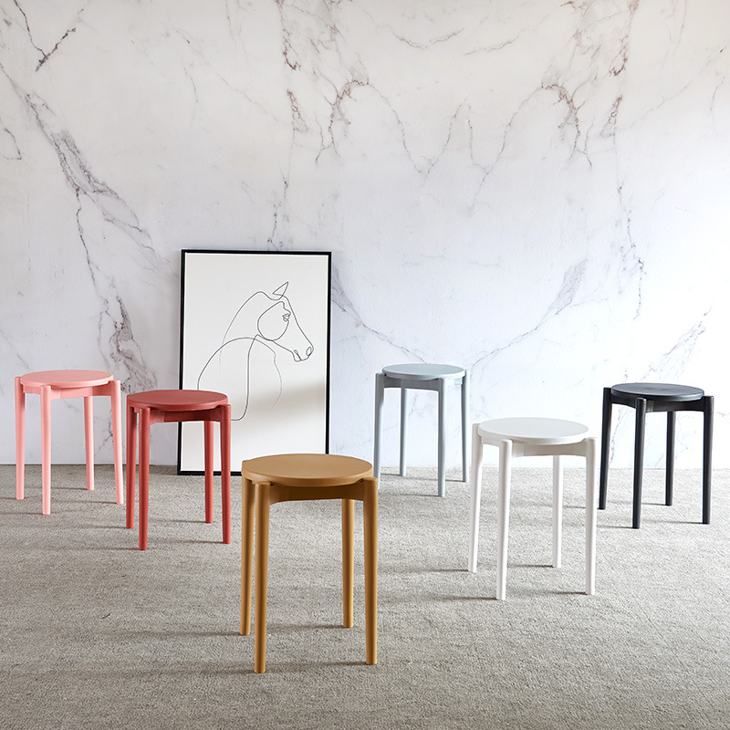 厚みのあるプラスチック製のスツール、家庭用北欧のシンプルなリビングルームのダイニングテーブル、高さのあるベンチ、積み重ね可能なクリエイティブなレストランの調理用ラウンドスツール
