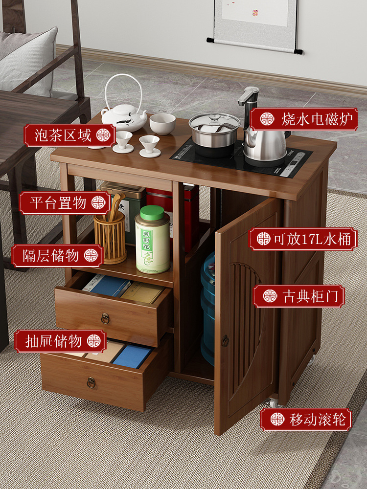 モバイルティーキャビネット、家庭用コーヒーテーブル、オフィスティーテーブル、サイドテーブル、ティーテーブル、小型ケトル、一体型ティーサイドキャビネット