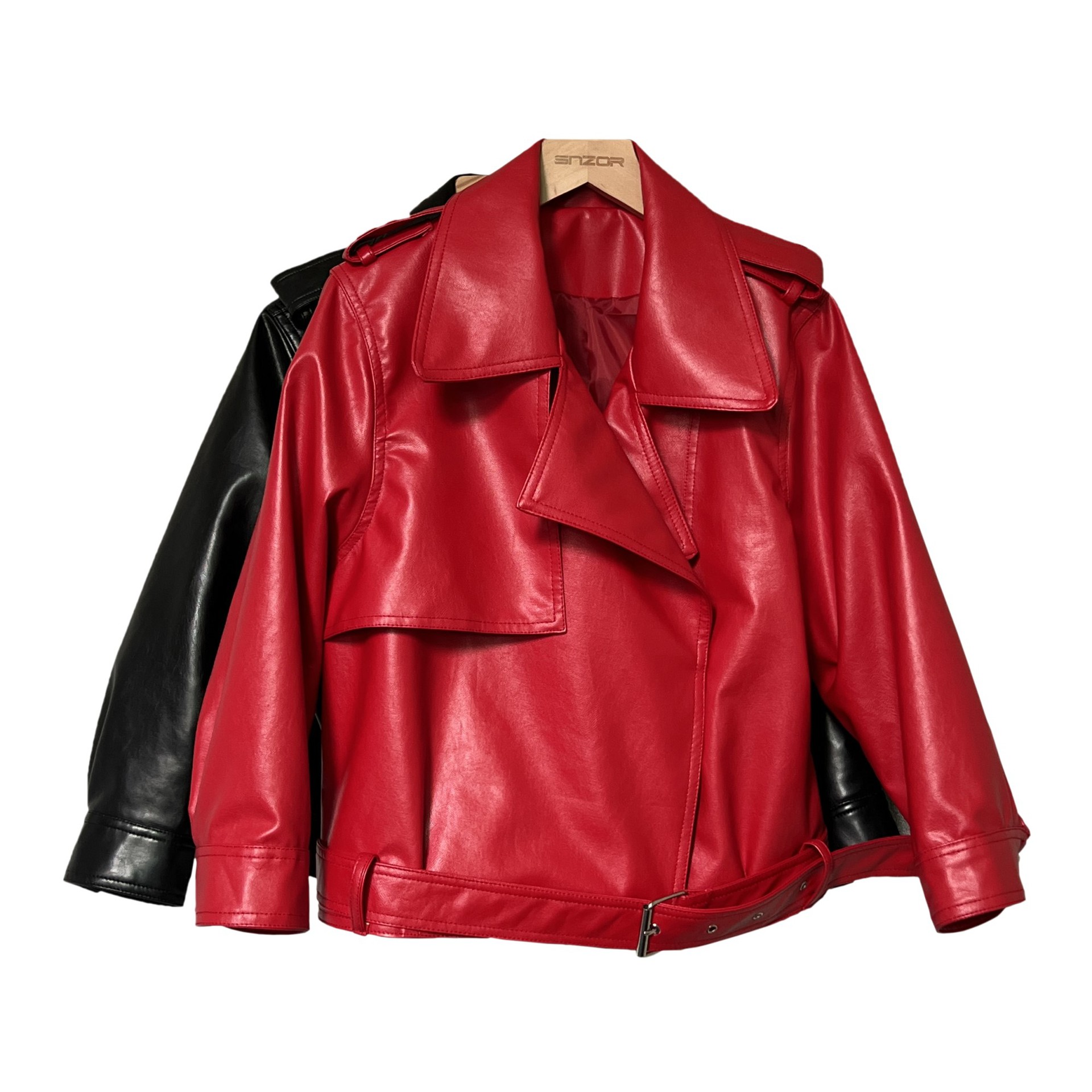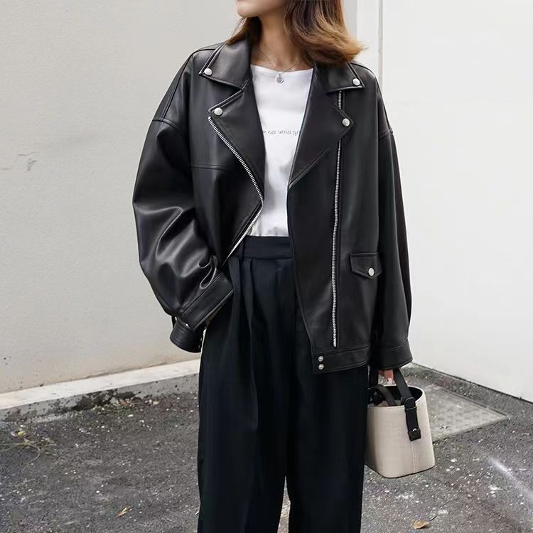 クロスボーダーの女性の革の服の女性のゆったりしたジャケットの薄いタイプの春と秋のコートの女性の機関車の服の大きいサイズの襟の革のジャケット