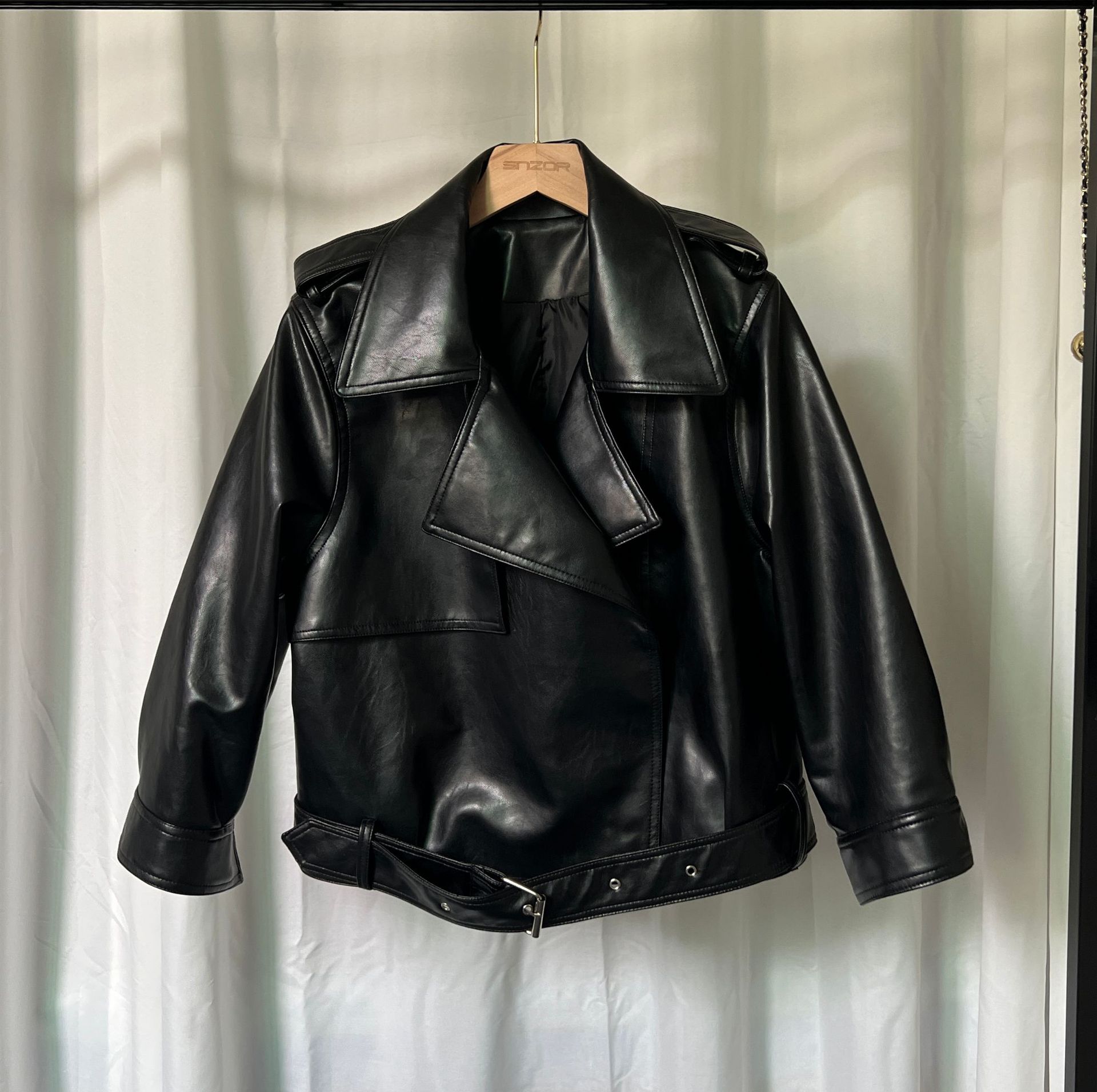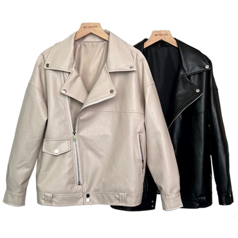 速売通爆金2024春と秋の新型ゆったり版BFスタイル襟pu皮ジャケットゆったり版女性コート