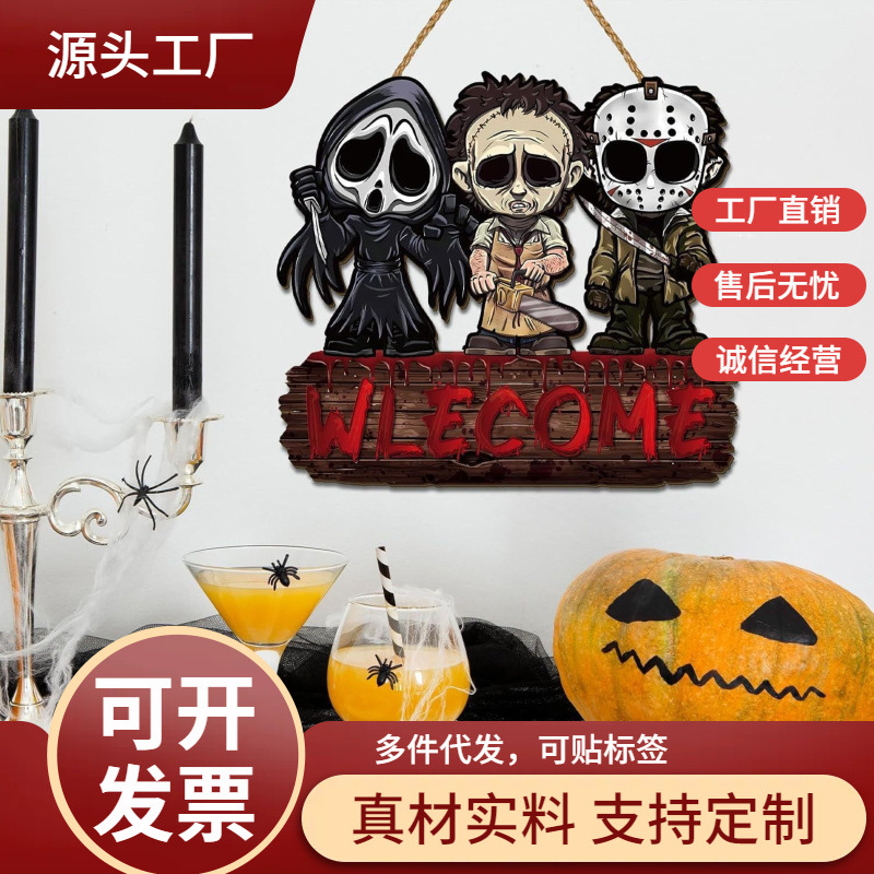 ハロウィーン装飾ハロウィーンホラークラシック映画木製ドアマークSam叫び死神ドア装飾花