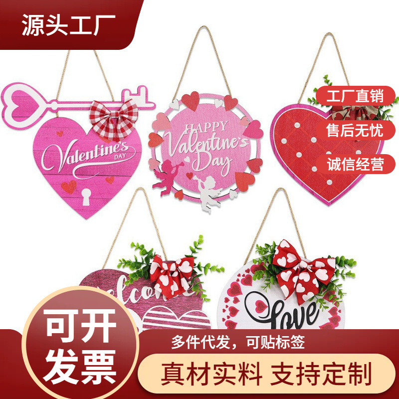 バレンタインデーの木の工芸品の愛の蝶結びの木のブランドは祝日の家庭の装飾のシミュレーションの草の歓迎の表札を掛けます。