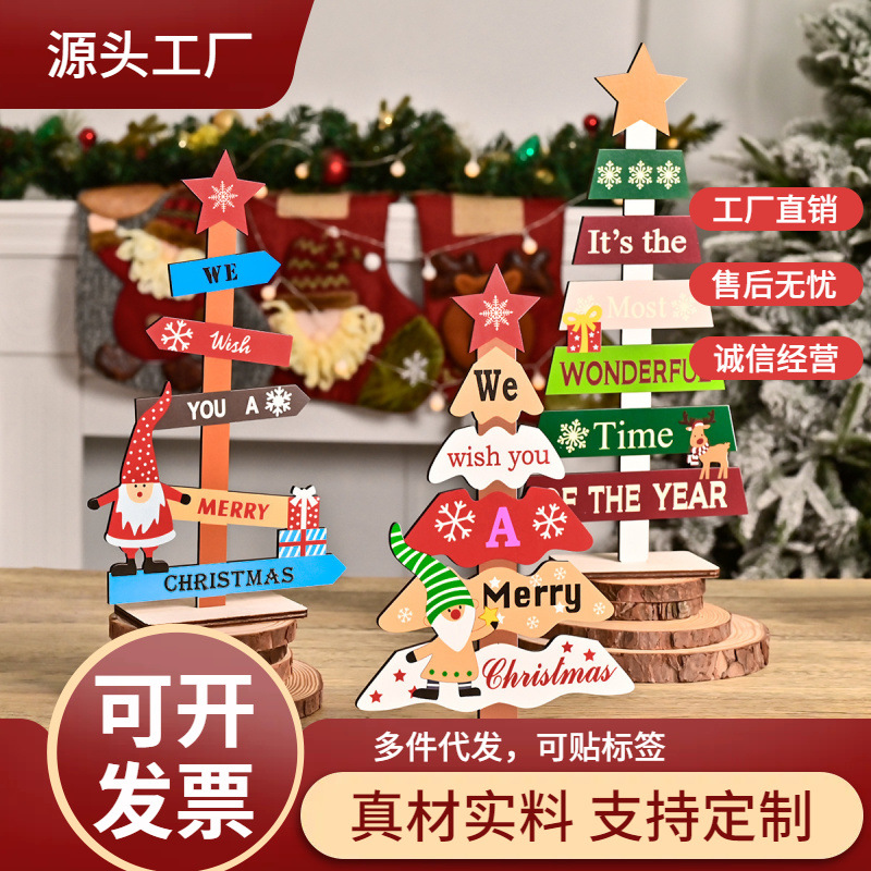 クロスボーダー新作クリスマス木製工芸品カラーアルファベット置物デスクトップクリエイティブプリントクリスマス装飾品