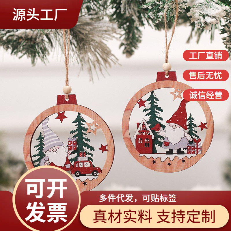 新商品創意クリスマス装飾品木製森林小人老人ペンダントクリスマスツリー木製ペンダント