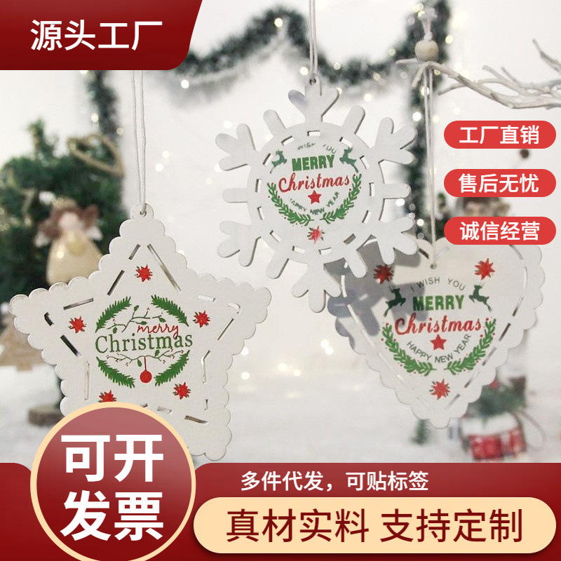 新しいクリスマス装飾用品木製色絵五芒星クリスマスペンダントアイデアクリスマスツリークローゼット装飾