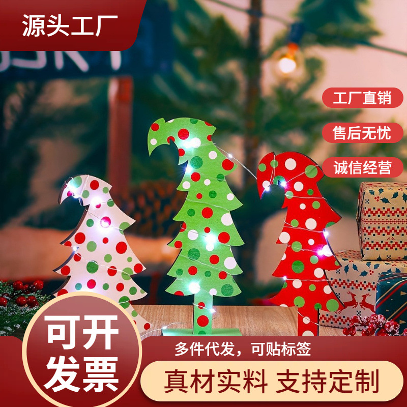クロスボーダーtemu新作三点クリスマス三色波点クリスマスツリー木製デスクトップ置物置物置物