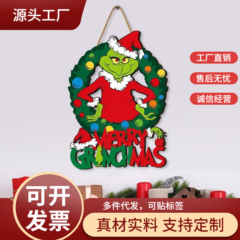 クリスマスの新型国境を越えた木製の壁面装飾グリーン奇吊り下げストラップ緑毛怪家庭装飾看板