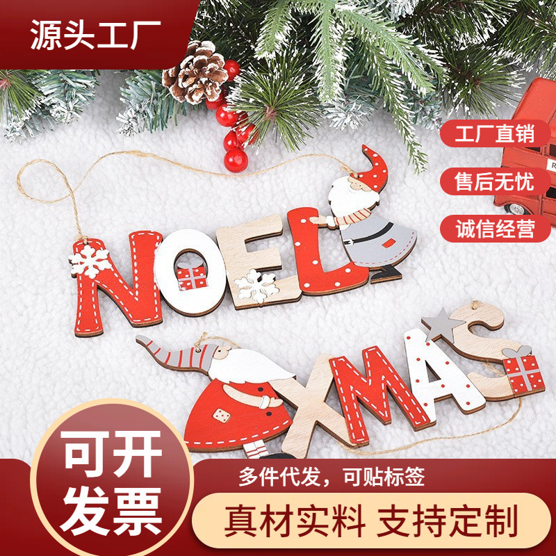 国境を越えた新しいクリスマス装飾用品サンタクロースのアルファベットが掛けられたアイデアクリスマスツリーの木製装飾