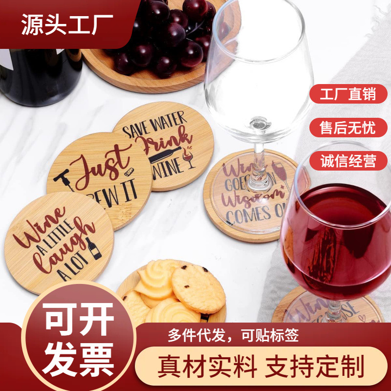 木製の丸いワインのコースターのレストランのテーブルの杯の蓋のバーのデザートのお菓子の木の托の竹のガラスの杯の托