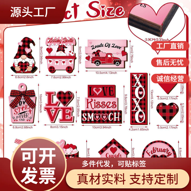 17ピースバレンタインレイヤードパレット装饰的なファームハウスの小人ハート型の格子木のテーブルのロゴバレンタインパーティー装备