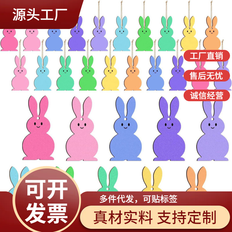 イースターバニー木製ペンダント30個カラーウサギ形状イースター透かし彫り装飾ラベルロープ付きプレゼント