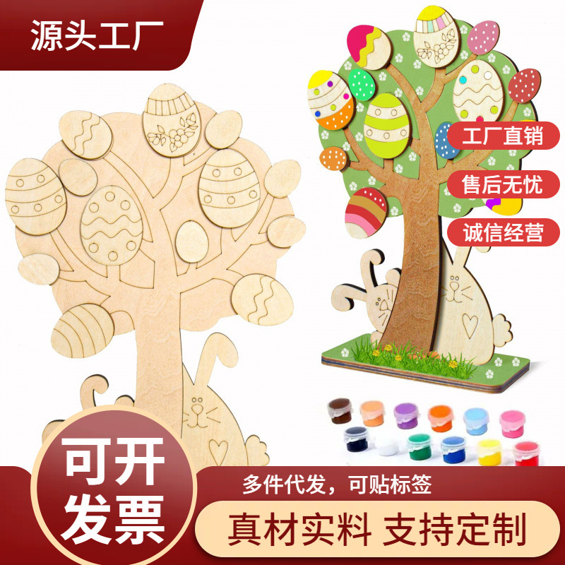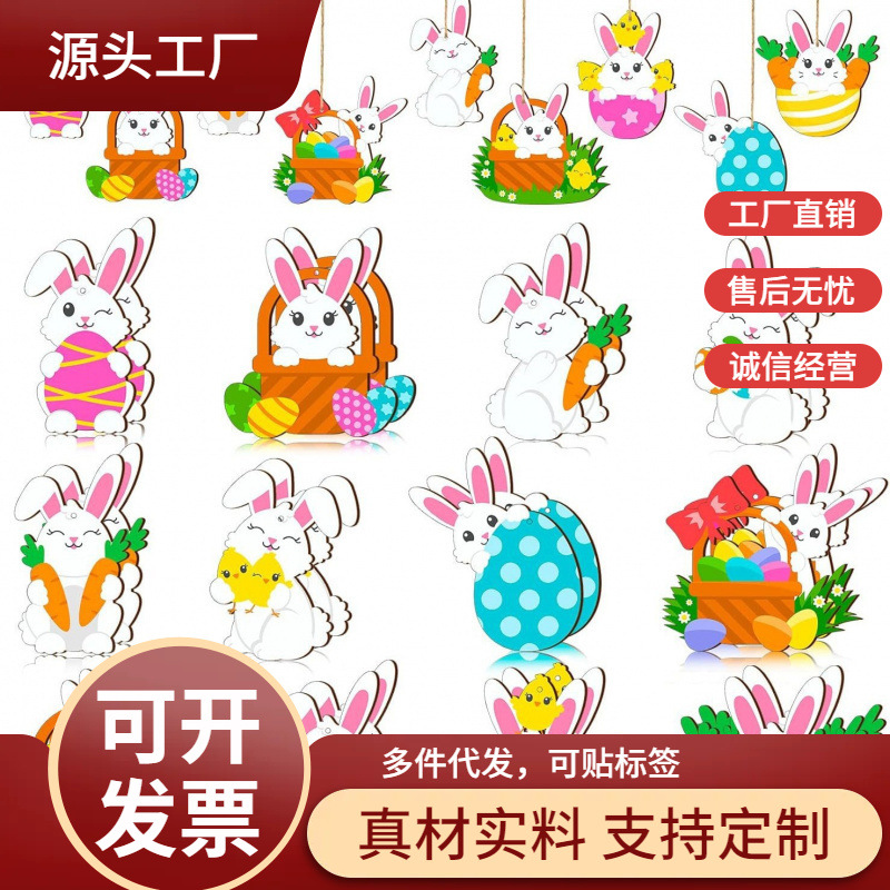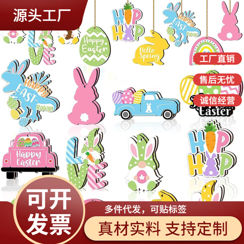 イースター木製装飾品クリスマスツリー楽しいイースターエッグ小人ウサギひよこ透かし彫り木質品