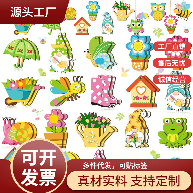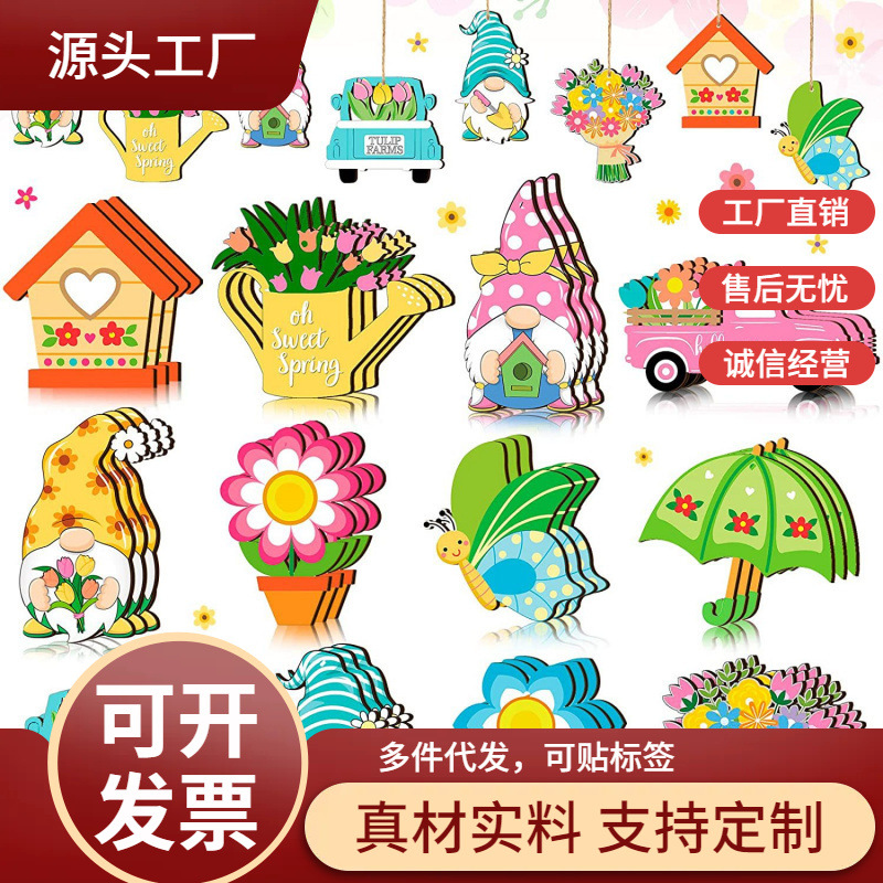 40ピースイースター木制ペンダント春蝶家イースター小人木制吊りパーティー用品