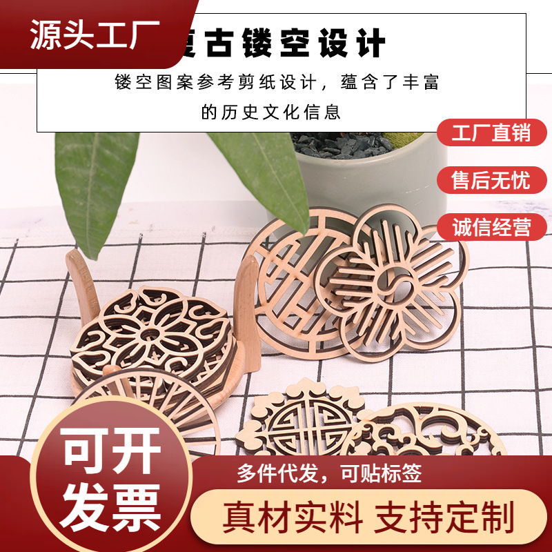 現物速発透かし彫りシリーズ木製合板コースター食器マット家庭用断熱マットは自分の模様を作ることができる