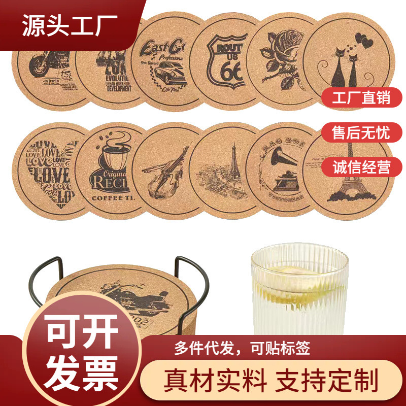 断熱マット木製マットカーコーヒーコースターマット北欧レトロ円形コルクコースター滑り止めパーマ防止カップマット