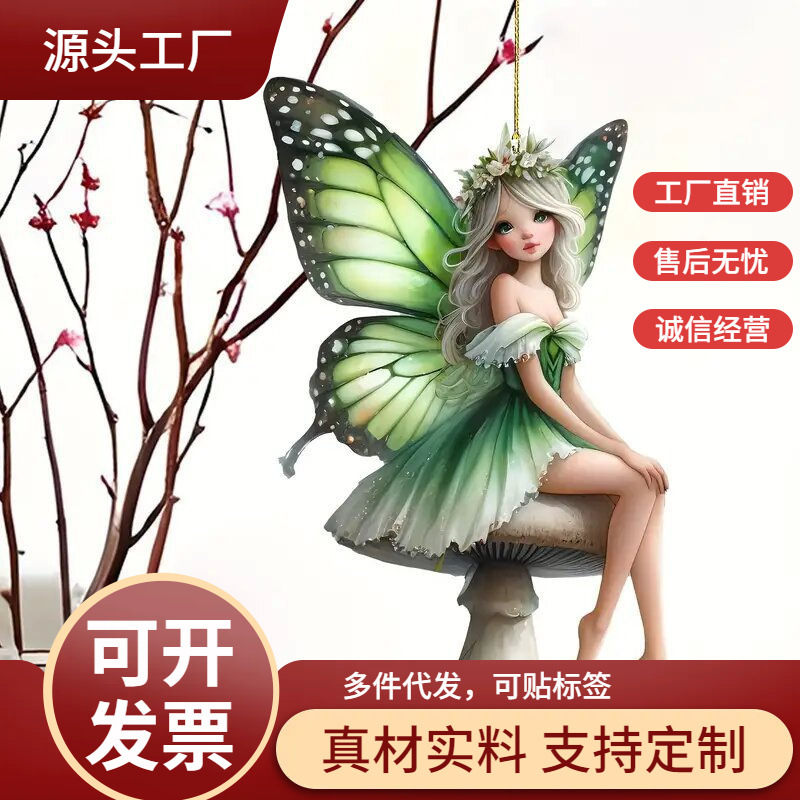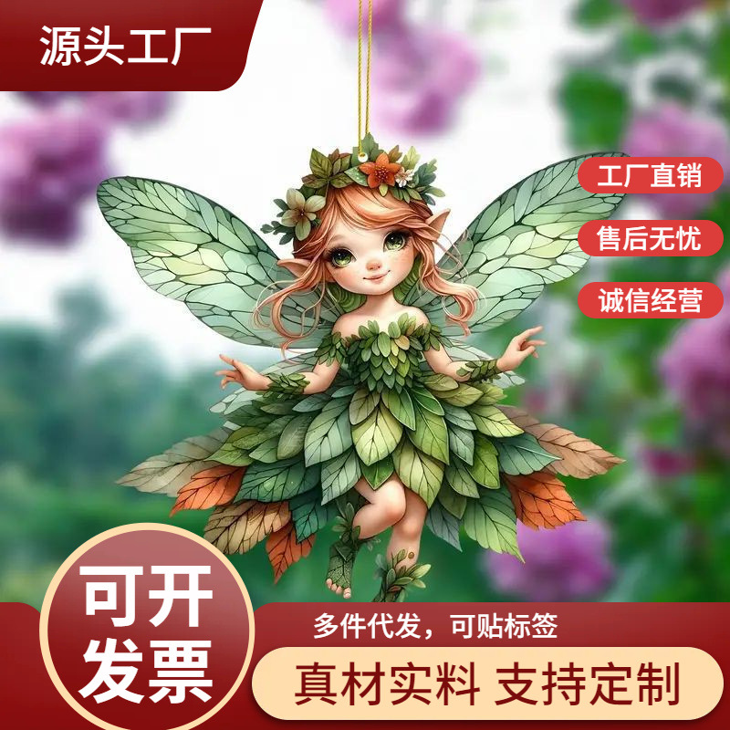 新型かわいい緑衣仙子ペンダントアクリルクロスボーダー平面車内バックミラー装飾品キーホルダーペンダント