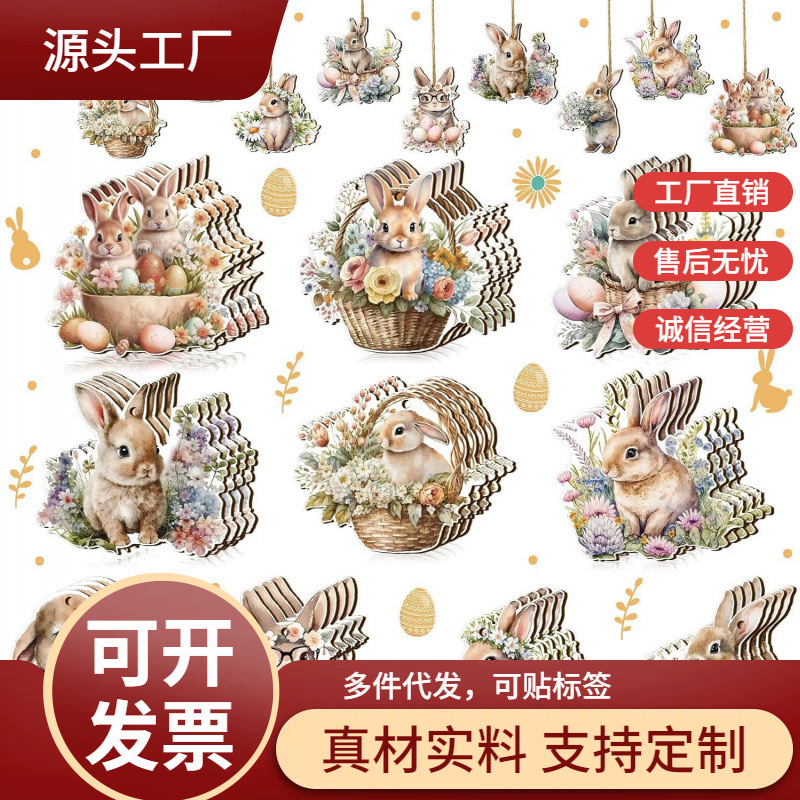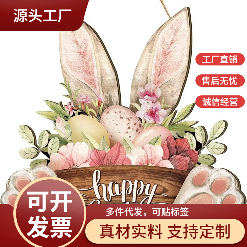 クロスボーダー2025イースター創意新商品爆発春花ウサギパーティーの前で歓迎語木製看板