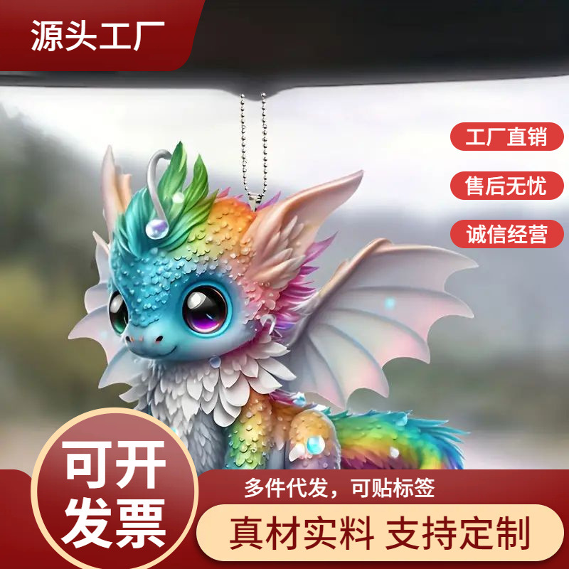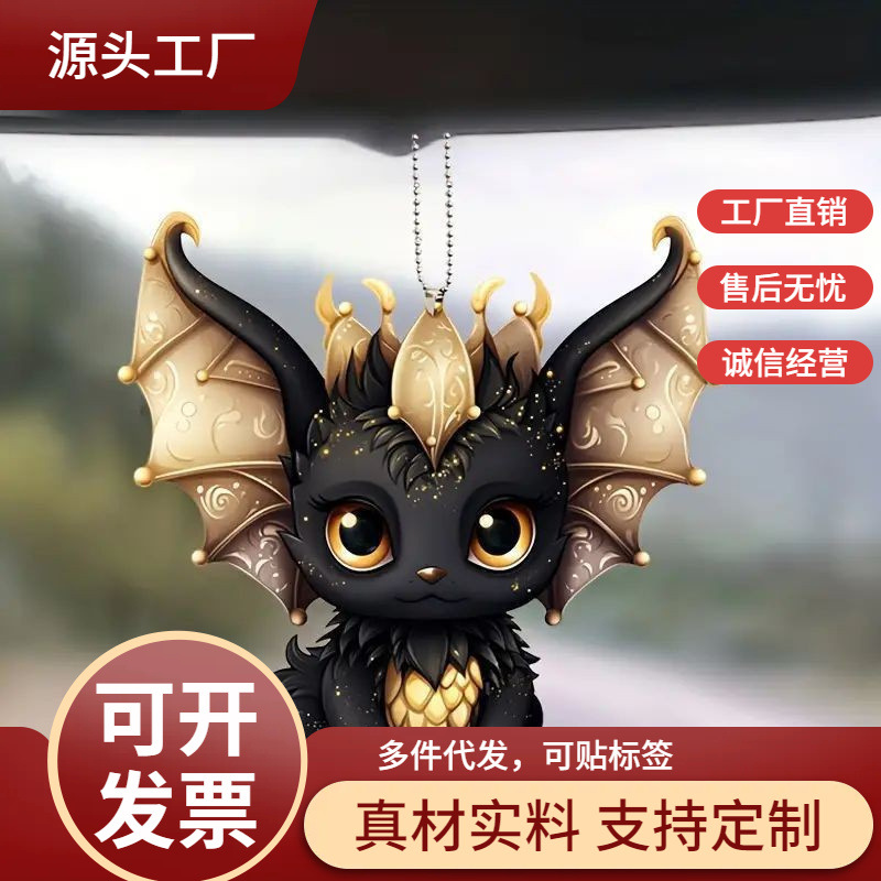 アクリル小黒龍自動車ストラップクロスボーダー新品平面車内バックミラー装飾品ペンダント