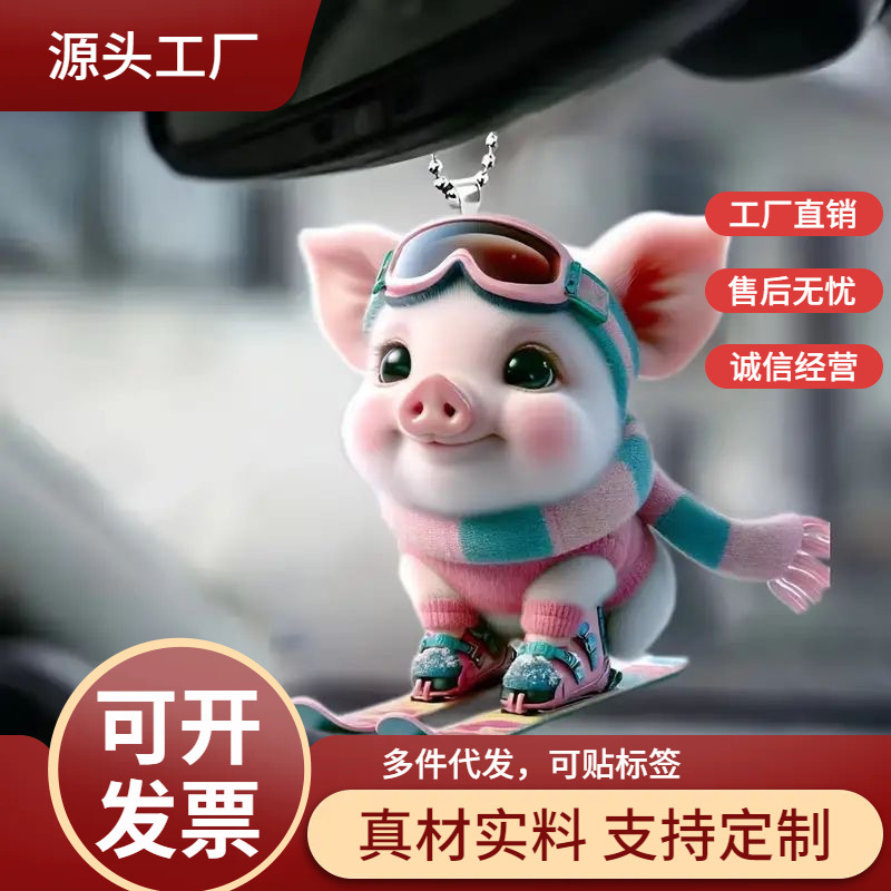 国境を越えた新型アクリル平面装飾ストラップかわいい豚豚バックミラーバックパック創造装飾カード
