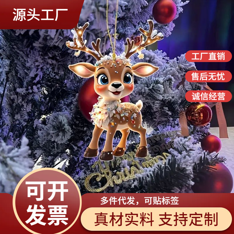 クリスマス新型ヘラジカクリスマスツリー装飾クロスボーダーアクリル平面自動車バックミラーストラップホームペンダント