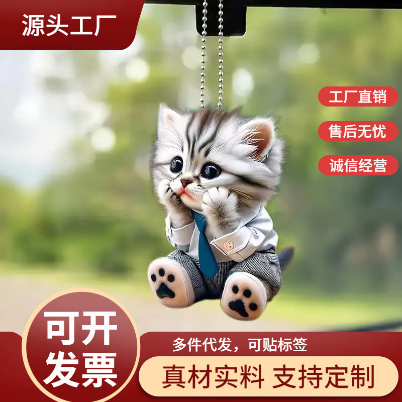 国境を越えた新製品アクリルが顔を覆う猫2dストラップ自動車内装車のバックパックのキーホルダー装飾装飾プレゼント