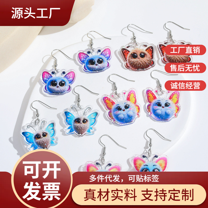 欧米の起爆商品のクロスボーダーカラーのアクリルイヤリングの個性的なデザインの甘いクールな風のグラデーションの蝶のイヤリングの装飾品