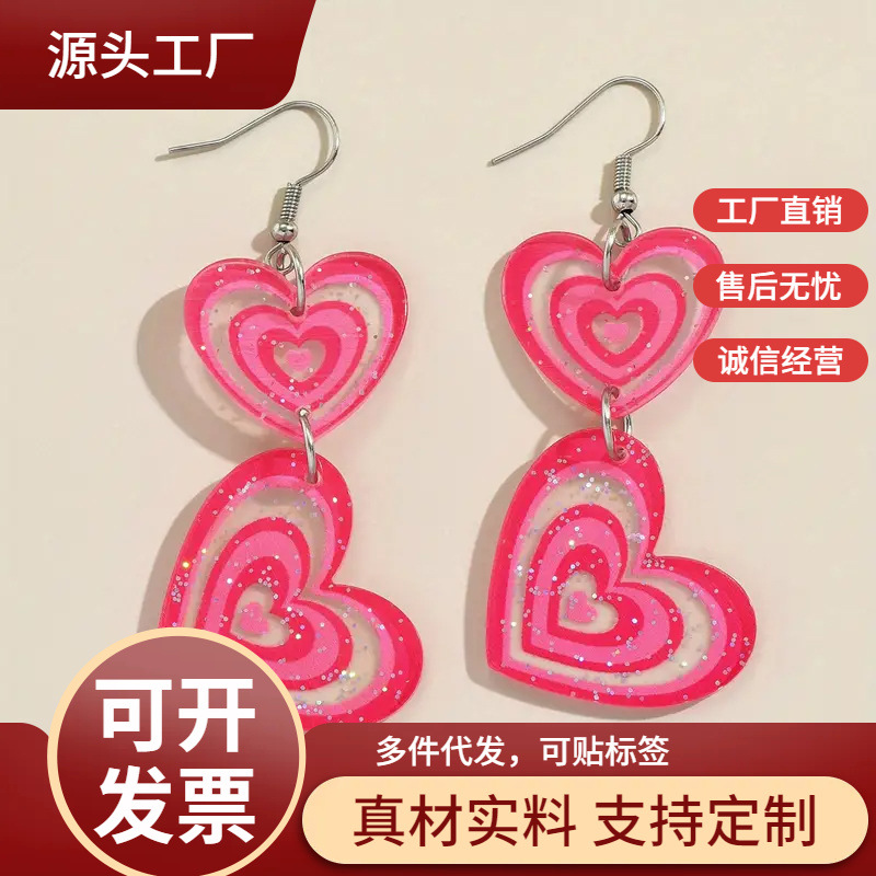 国境を越えた新製品アマゾンの爆発的なピンクの甘い愛のイヤリングアクリル平面イヤリング気質シンプルな耳飾り