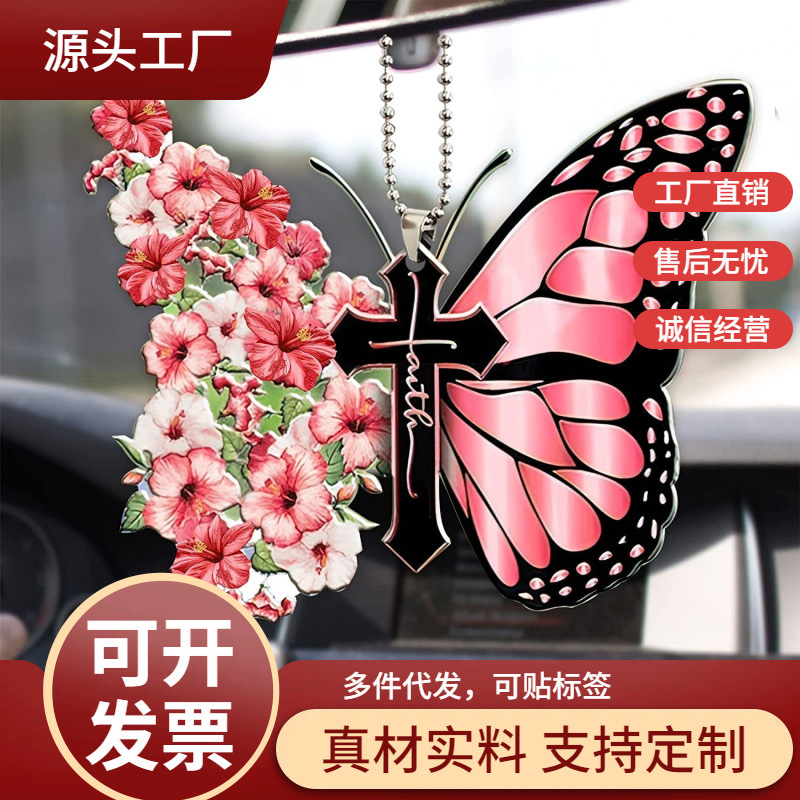 起爆アクリル蝶クロス恋人シリーズ自動車ストラップ内装用品クリスマスツリー装飾ストラップ