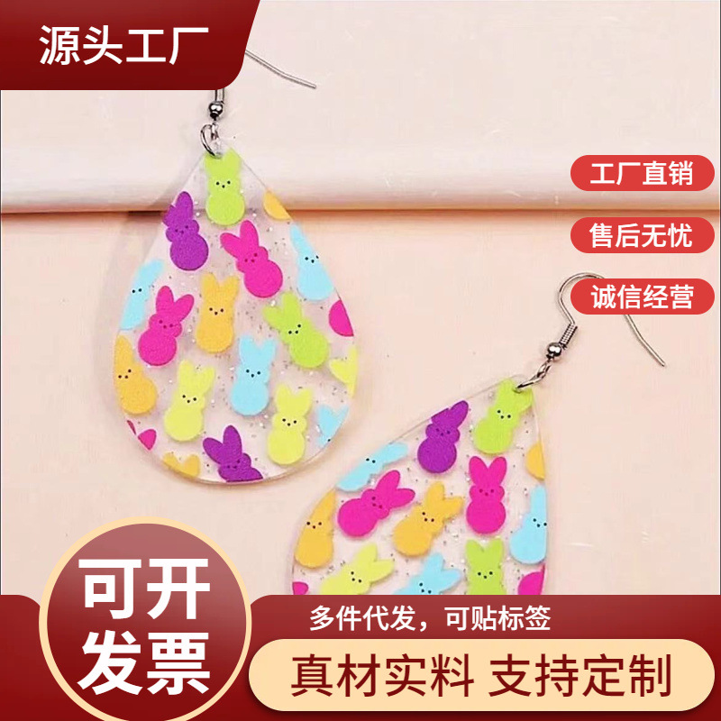 新商品は欧米の越境イースターのアクリルのウサギのイヤリングの個性の中実の愛の耳飾りの祝日の耳飾りのイヤリングを爆発させます。