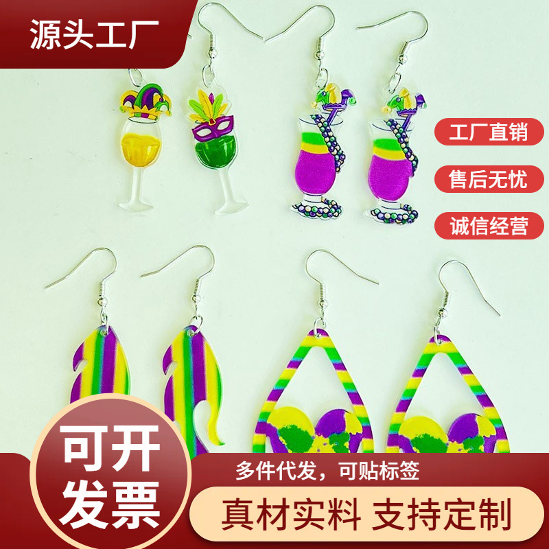 国境を越えた新製品の爆発飲料グラス愛バレンタインデー炎の色合わせイヤリングアクリルプリント趣味