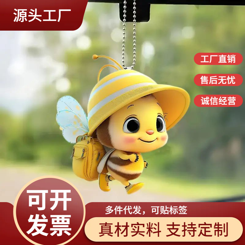 国境を越えた新しいアクリル平面はかわいいスズメバチの車にクリスマスツリーの装飾ストラップのパーティーを飾っている
