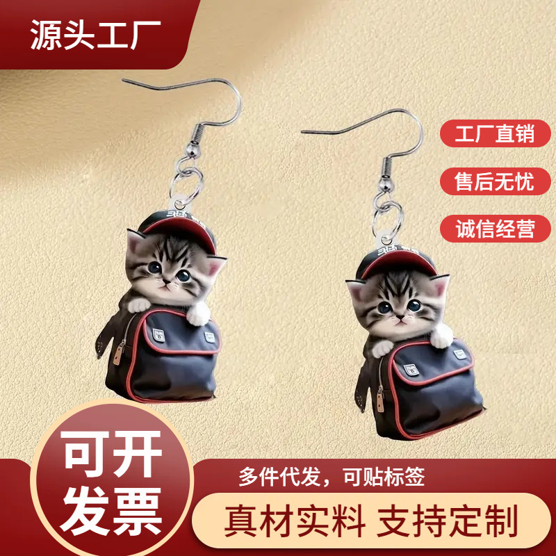 爆金ネット赤新商品ファッショントレンドアクリル平面猫個性イヤリング耳飾り飾り