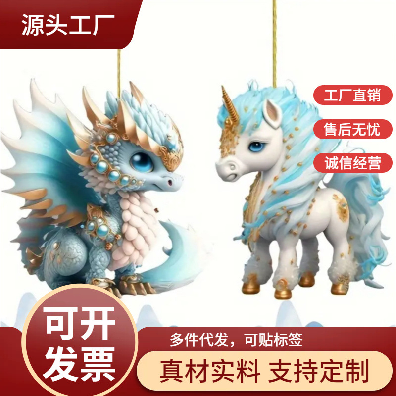 起爆クロスボーダー新商品龍麒麟アクリル装飾ストラップ新年プレゼントクリスマスツリーストラップバックミラーストラップ