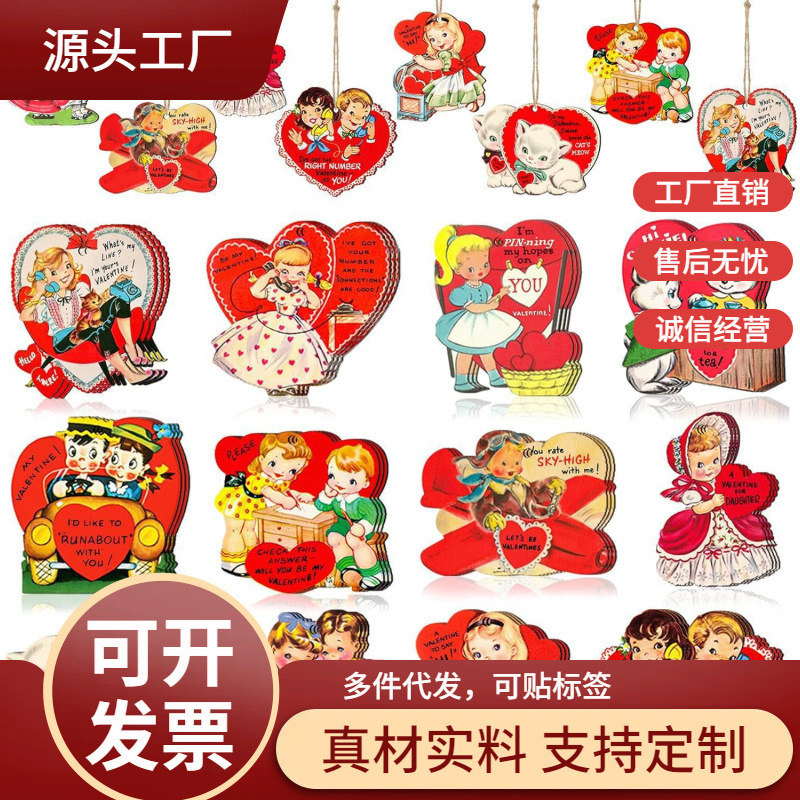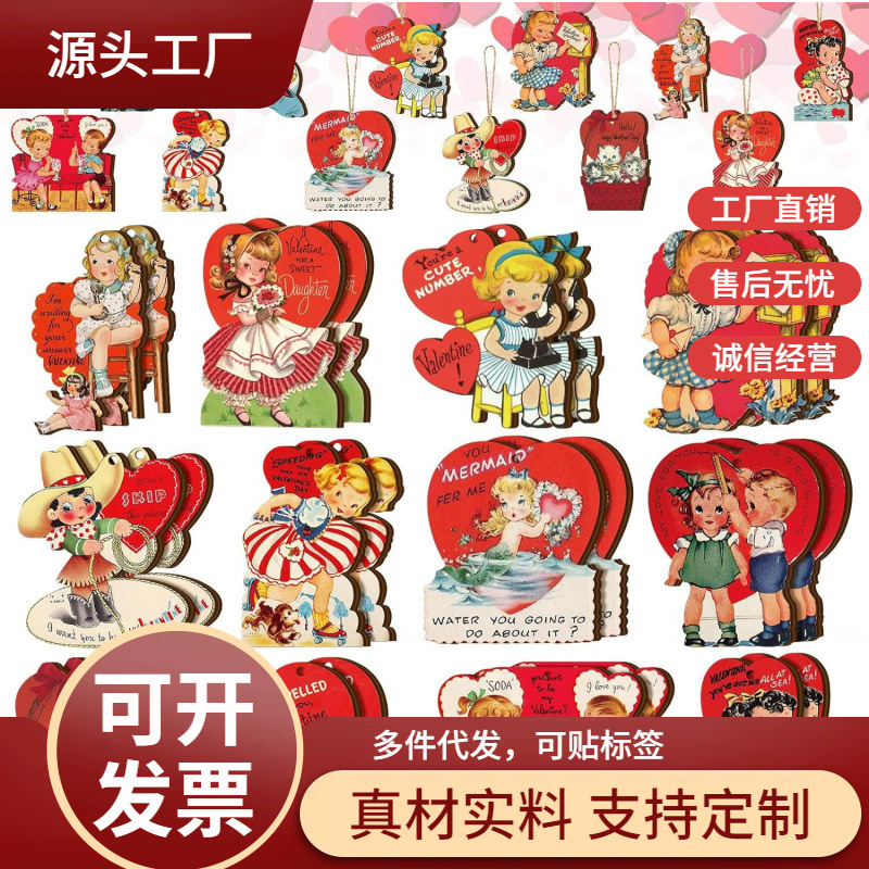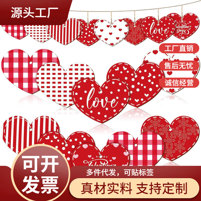 国境を越えたレトロなバレンタインデーシリーズの木製装飾ハート型バレンタインデー装飾木パーティーの祝日の家庭用ペンダント