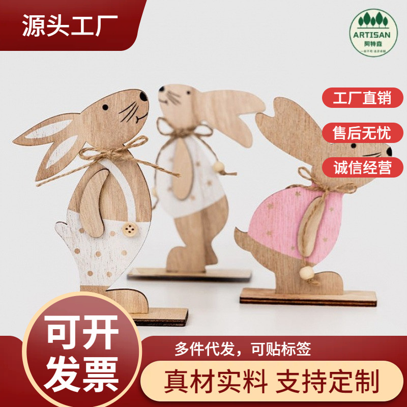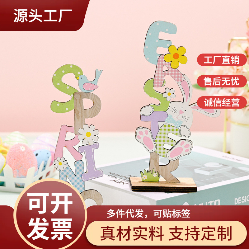 越境新品豪貝イースター装飾品イースター木製アルファベット置物イースター縦型置物