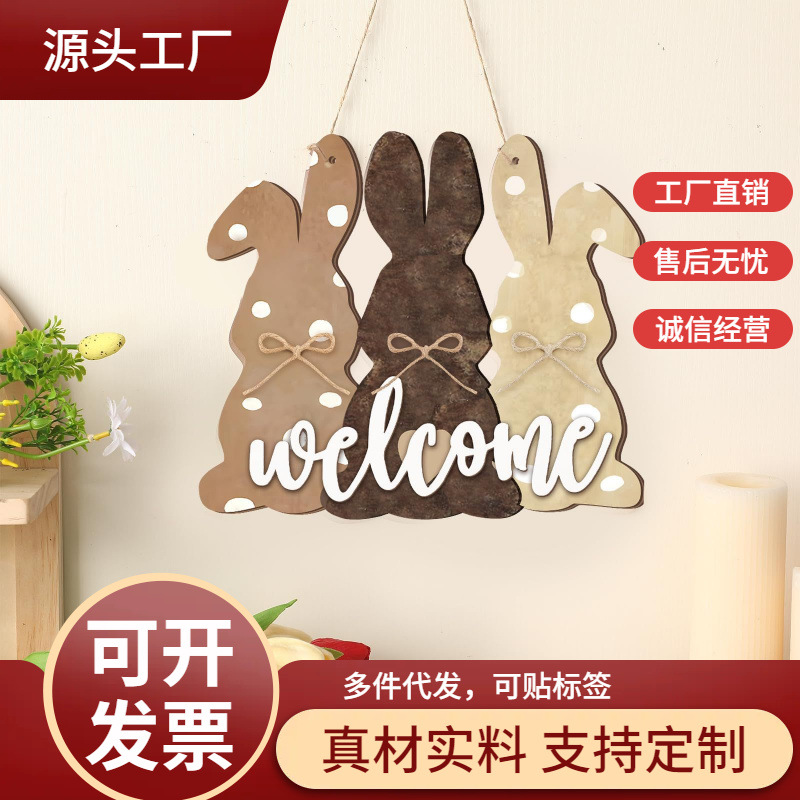 国境を越えたアマゾンの新しい家庭装飾3Dイースターウサギは木製ロゴの創造的装飾カードを歓迎する