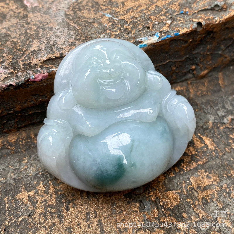 天然ミャンマーA品厚装翡翠玉仏ペンダント玉ネックレス漂花仏公女史金大腹弥勒仏