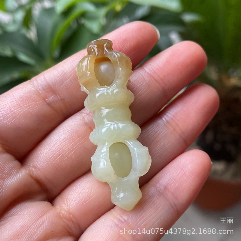 新疆和田玉降魔杵ペンダント天然糖白玉黄口金刚杵ペンダント透かし玉雕ペンダント