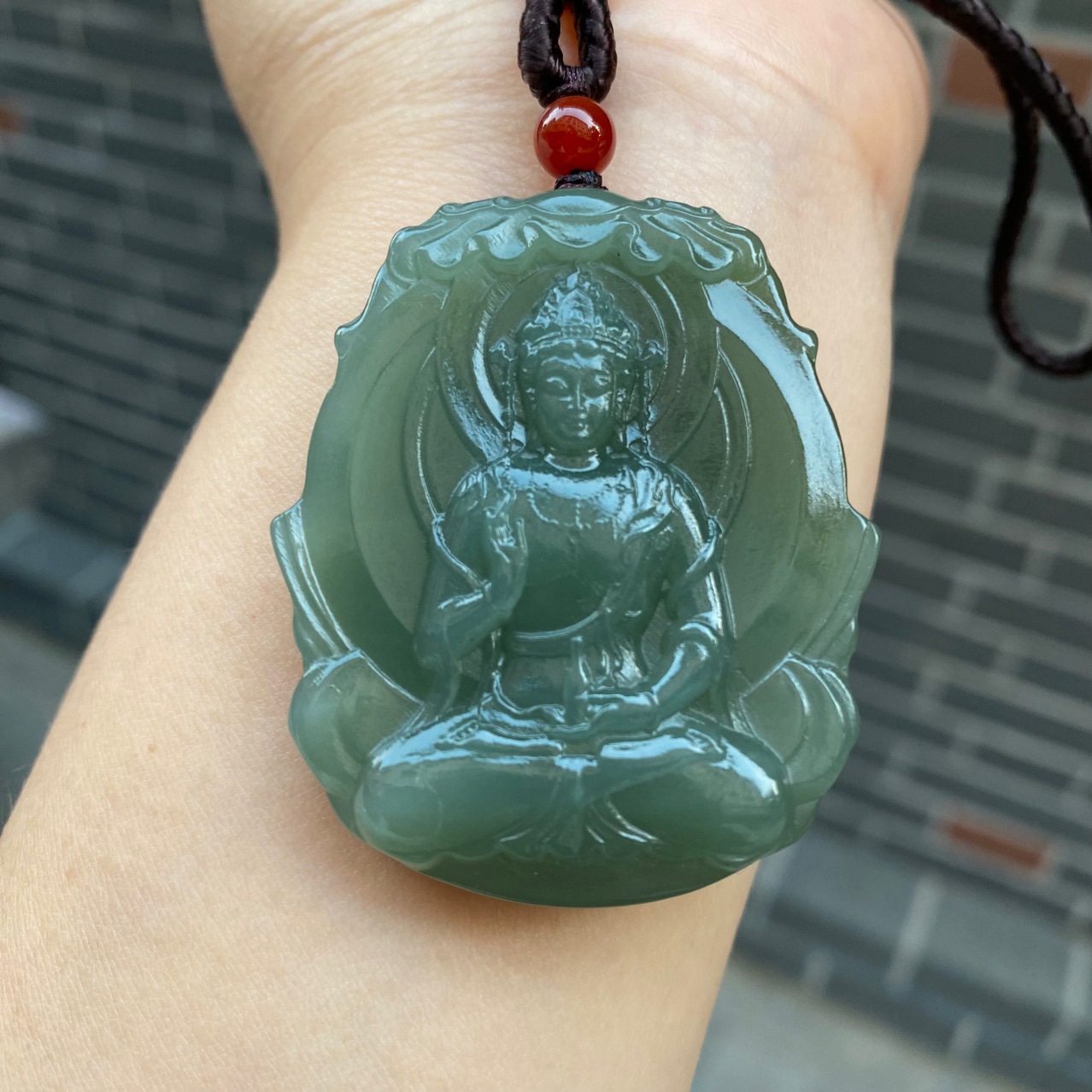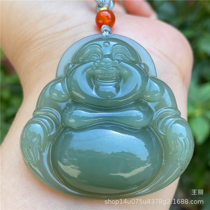 天然和田玉弥勒仏ペンダント大腹仏晴水笑仏公ネックレス玉仏玉佩湖水緑女プレゼント
