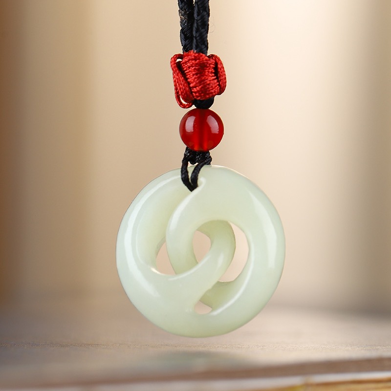 和田玉平安環ペンダント男女天然玉透かして乾坤石を回してカップルの玉佩ペンダントを輸送する