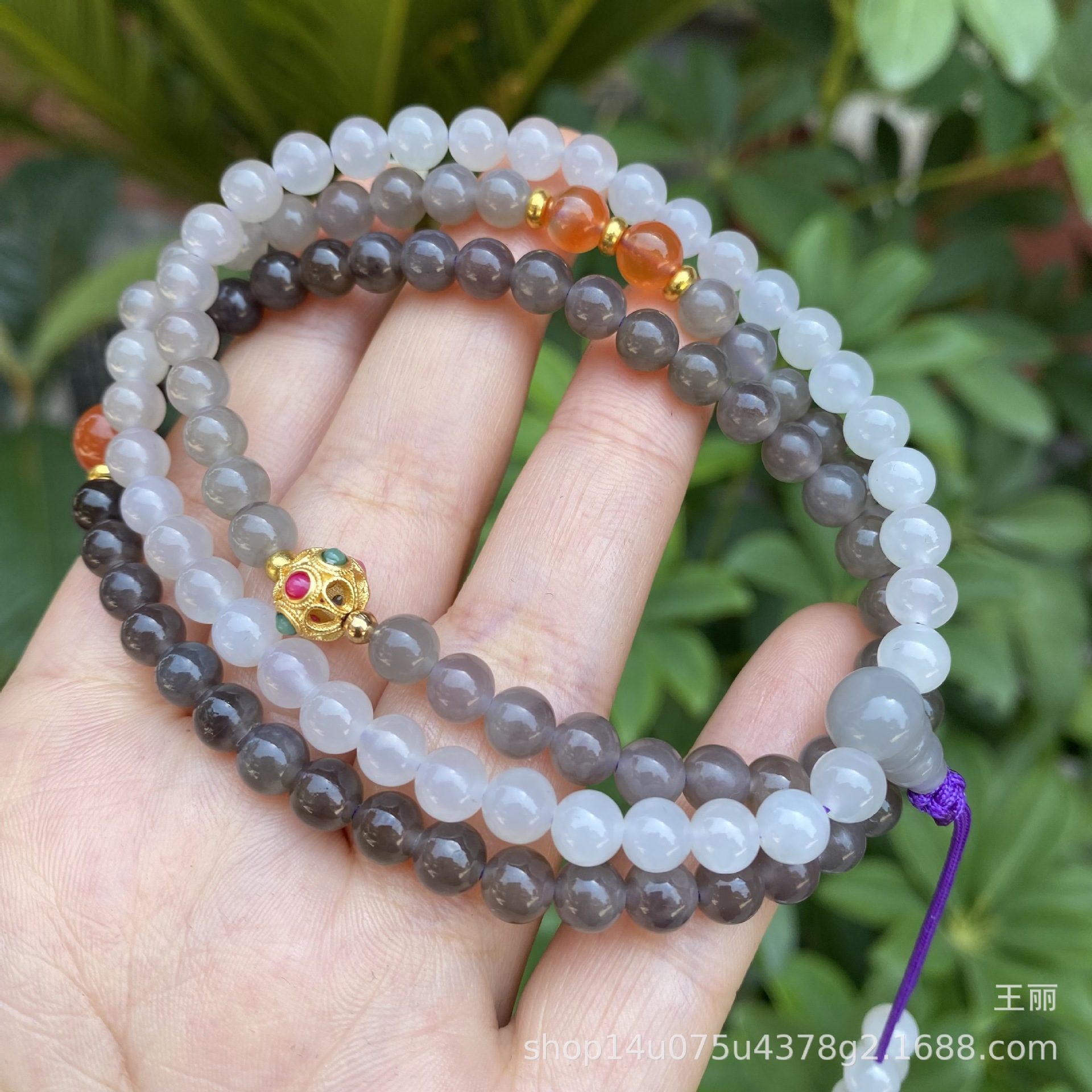天然和田玉108個の仏珠チェーン青海玉煙紫グラデーション玉ネックレス