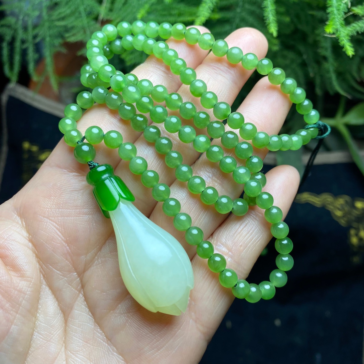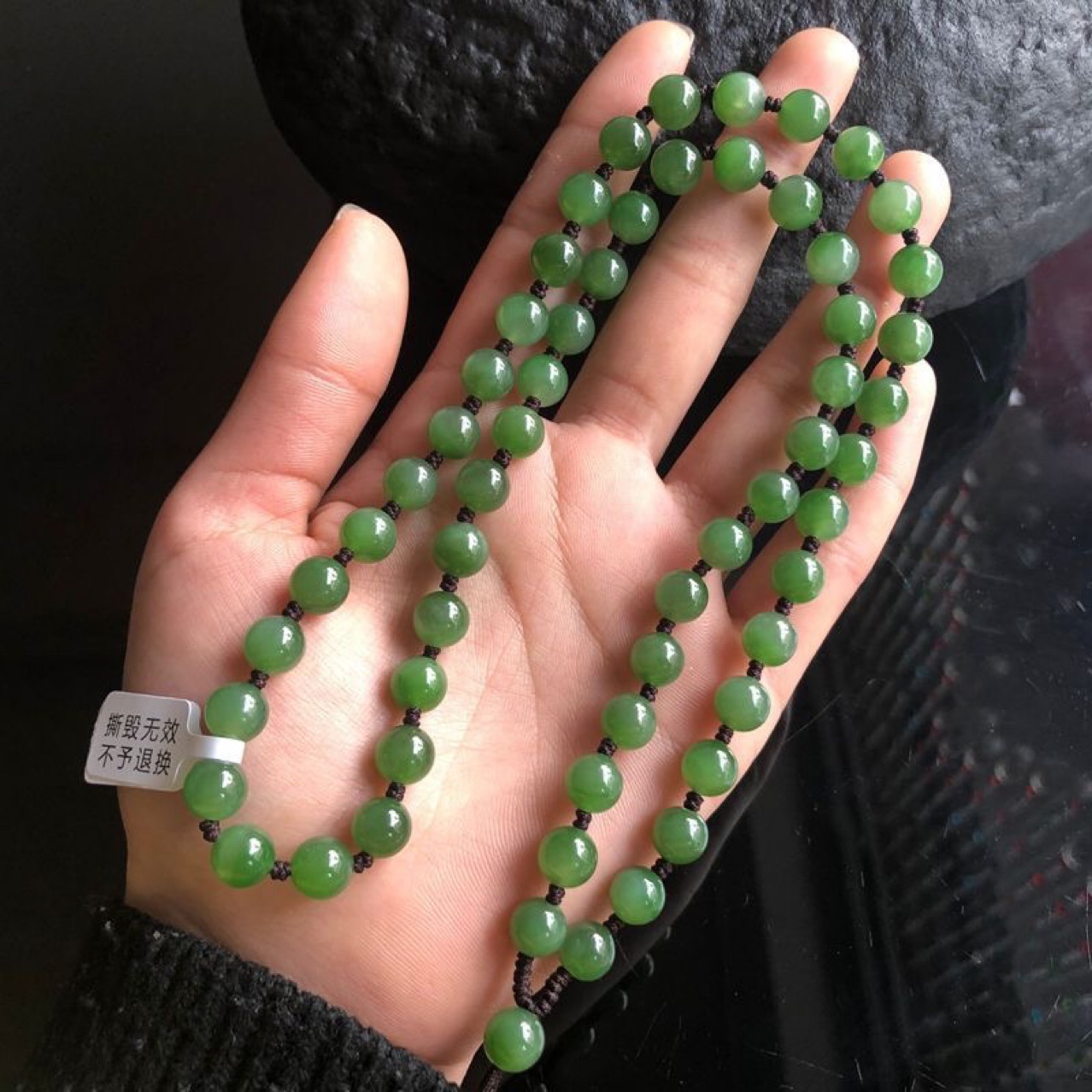 老坑新疆和田碧玉ほうれん草緑は碧玉珠子老坑を指して、心経証明書を持って再検査をサポートします。