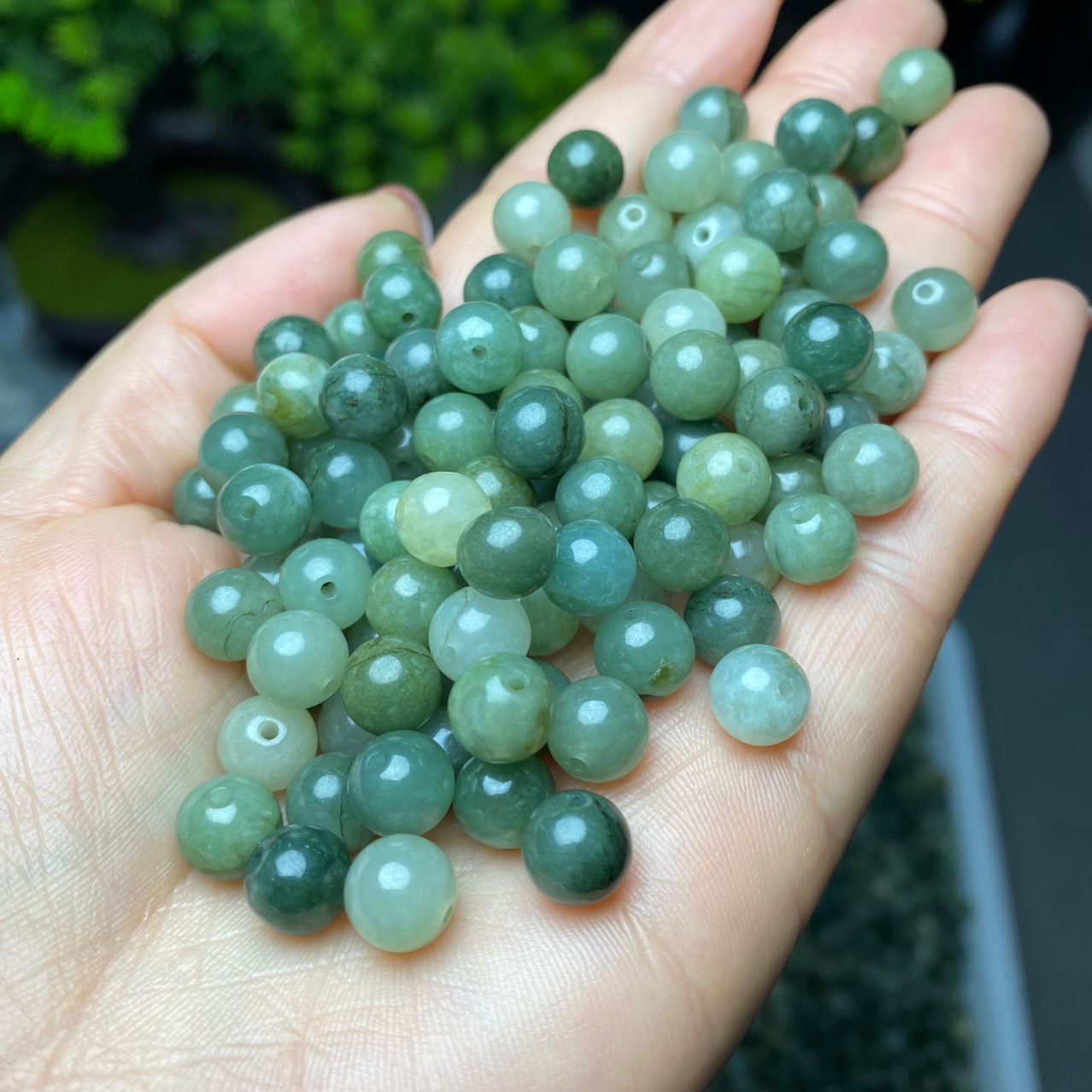 天然翡翠a商品油青散珠卸売りビルマ玉円珠手串ネックレス仏珠尾品清品