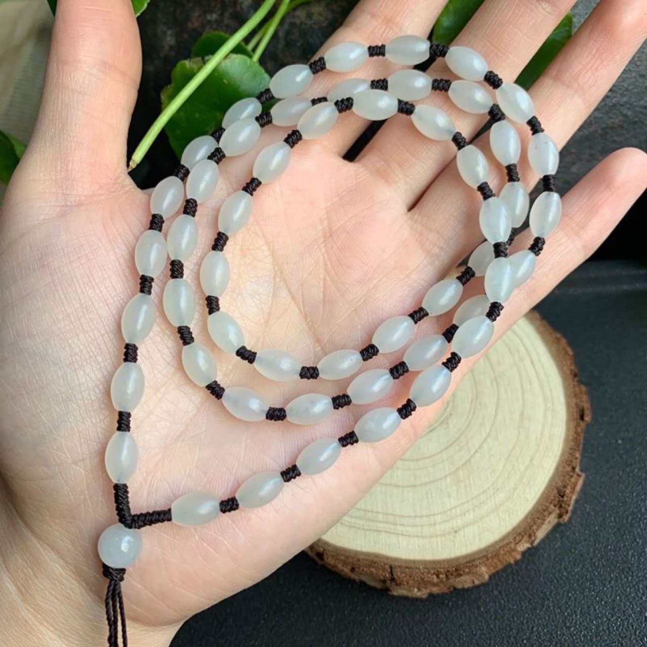 天然の和田玉のペンダントの玉のチェーンは玉の米の玉を掛けてネックレスのチェーンの縄を結びます。