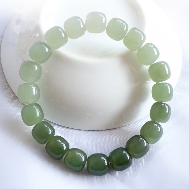 天然和田玉の古い型の玉の手は青海玉のグラデーションの桶の玉のブレスレットの玉のブレスレットの単輪の男女の金のアクセサリーを結びます。