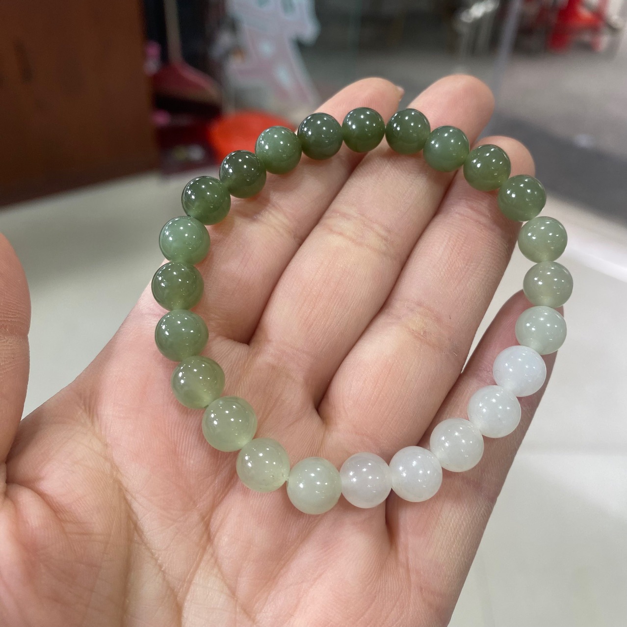 天然色和田玉グラデーション手串青海玉氷透湖水緑白玉8mm円珠グラデーションブレスレット