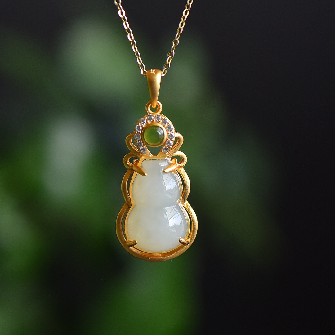 金の玉の小さいヒョウタンのペンダントのネックレスと田玉の白玉の福禄の鎖のs 925の銀の金メッキのネックレスの贈り物